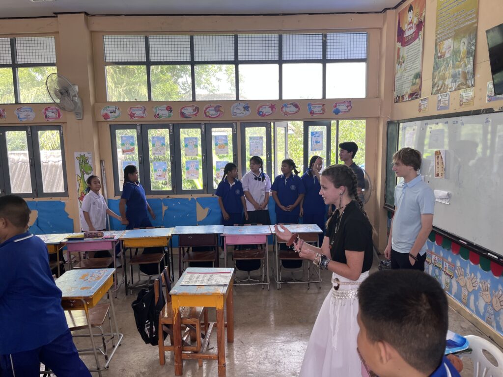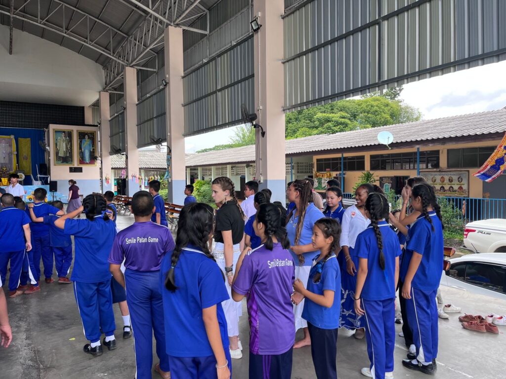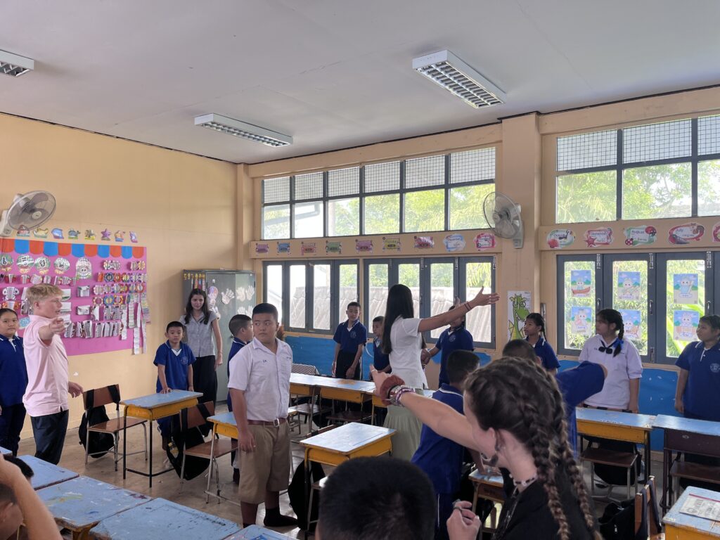 Today was another rewarding day of teaching and bonding with the kids at the local elementary school. We spent the morning working with students from grades 4 through 6, guiding them through activities and lessons until around noon. Afterward we shared a lunch at the school, where the kids introduced us to a fun local Thai game and the whole school joined in. It was a perfect opportunity for everyone to relax, laugh and connect on a more personal level.