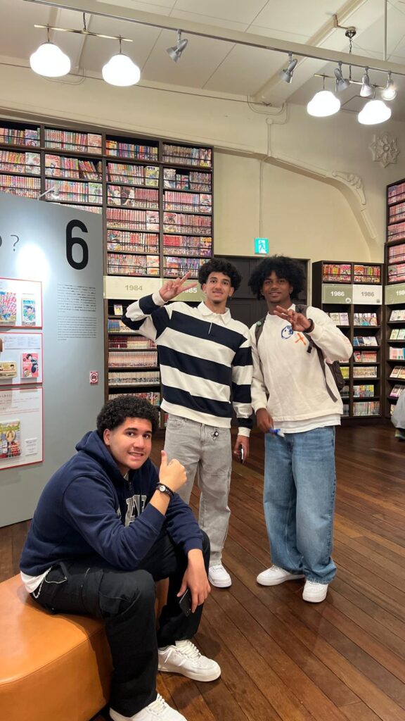 First we checked out of our hotel and took the bus to Kyoto. We then went to the Manga Museum where we saw many different genres of manga. The museum showed us the history of manga as-well as how manga covers are made. There were sections where you could draw your very own manga cover which was very nice because we got a glimpse into what manga artists need to do in order to catch the eye of the reader. After the museum we ate lunch at a local mall where we saw different foods both western and local.