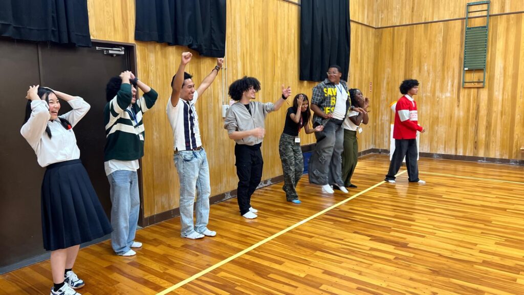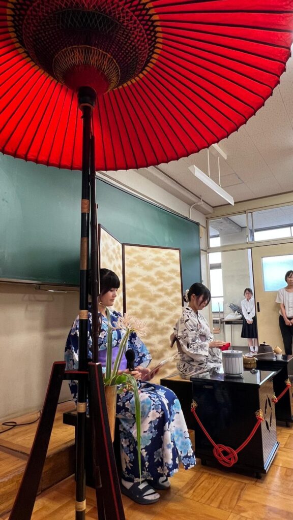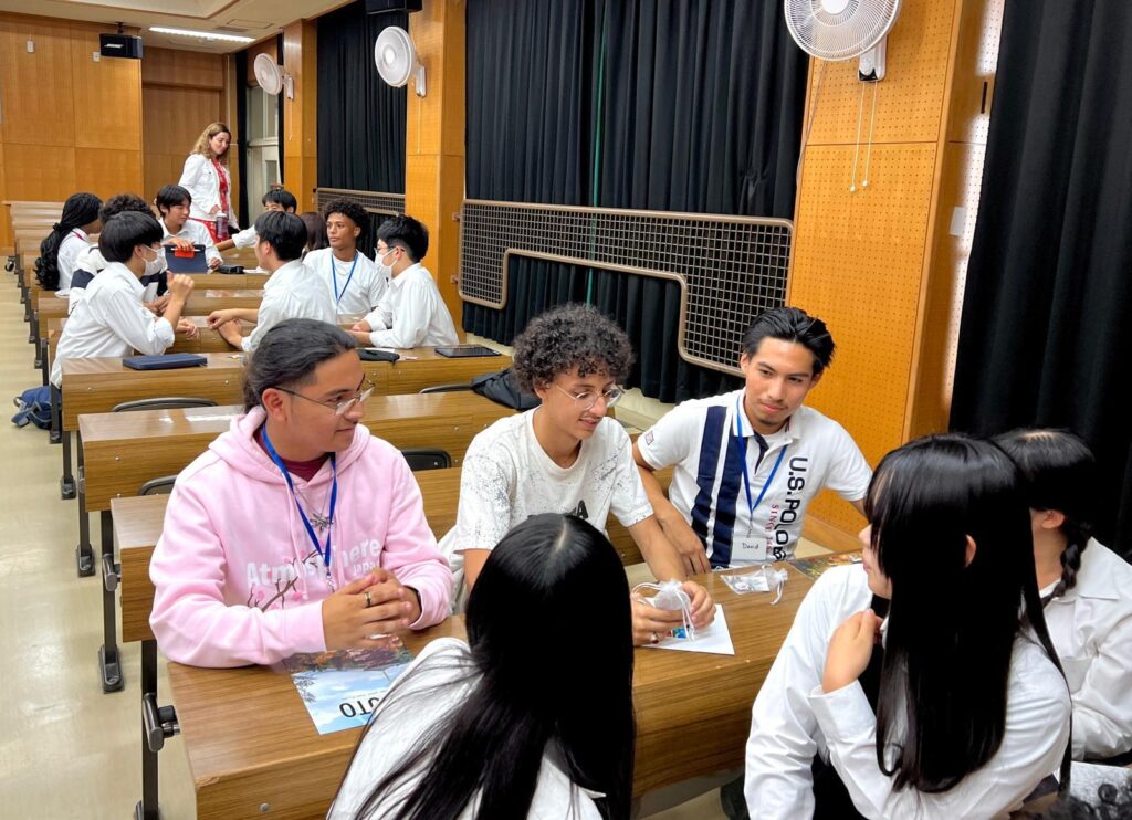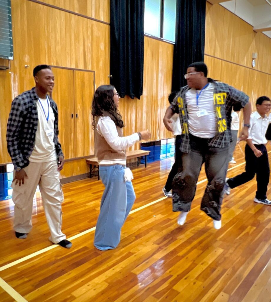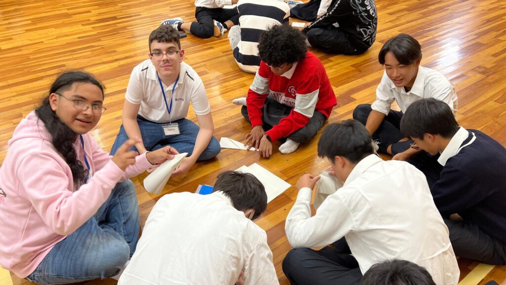 After lunch our pod and part of pod 2 visited Todoh Senior High School where we interacted with different students from the local school. We got a glimpse into school life for Japanese students and into their culture. They introduced us to their lives and introduced us to important things in their culture such as the tea ceremony. We had a lot of activities with them and really got to talk to them a lot. Everyone had a lot of fun with paper airplane flying contests, origami, learning some Japanese phrases, charades, all in small groups of American and Japanese students together.