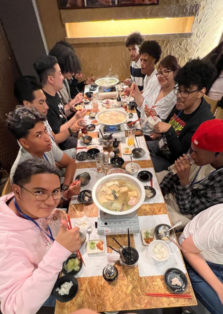 Afterwards we went and ate hot pot in which we got to eat Japanese dishes such as thinly sliced pork and vegetables we cooked in a boiling broth at our tables, which was fun.