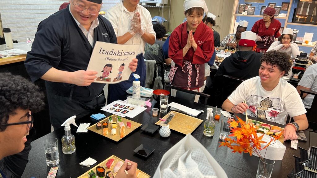 After having a long night’s rest, the pod gathered into the bus and made their way towards our sushi making class. Unfortunately, one of the students lost their wallets, which would have been bad; however, it was found by a kind person who found the student online using the information inside the wallet. The student’s chaperone Mr. Yuan was able to go pick up the wallet and return it safely to our student with nothing missing. Japan is amazing!