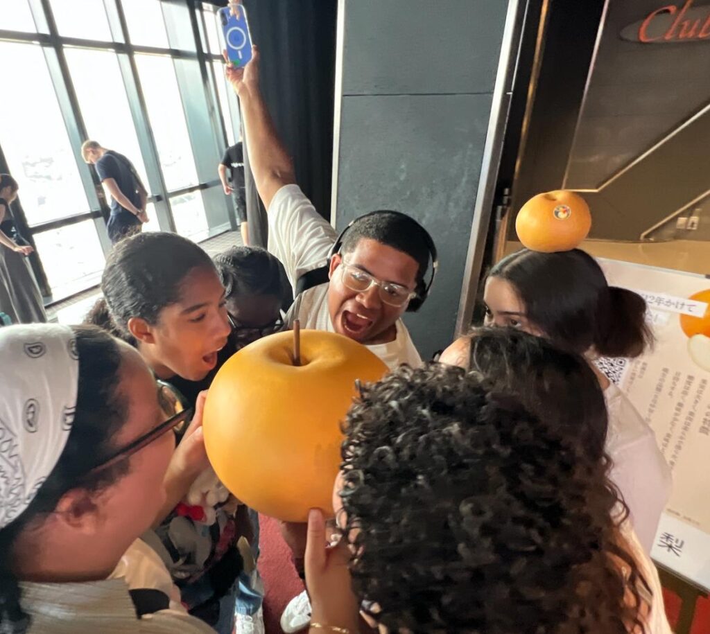 We arrived to Tokyo station from Kyoto, after a ride on the Shinkansen bullet train, where we split up to all get different foods, we were able to try authentic ramen and traditional Japanese restaurant food. After we all finished eating, we gathered up and took a stroll down the Japanese Character Street, where there were stores of all kinds; anime, video games, and other famous franchises. We explored and shopped for a while before heading out to the famous Shibuya crosswalk (the Times Square of Japan). When we were done crossing a couple of times, we made our way to dinner, where we had a western style buffet (American style). The buffet was located at a beautiful park where we were able to see a small replica of the Statue of Liberty, along with a wonderful view of the rainbow bridge and the Tokyo skyline behind it. We finished eating and spent time taking pictures with our pods, friends, and solo photos. Finally, we headed to our new hotel and prepared for the next days adventures!