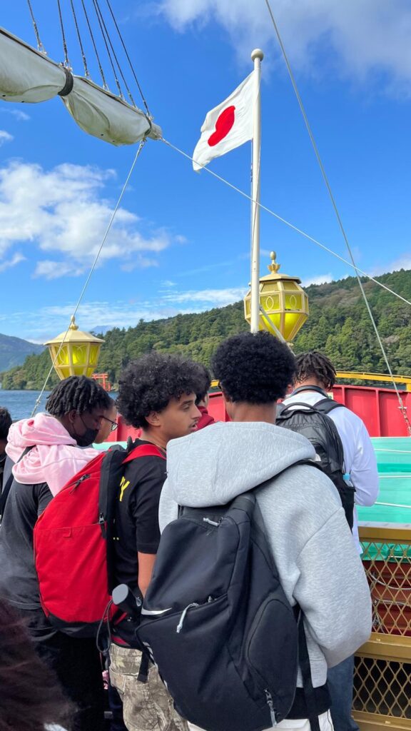 Today on October 7th we woke up at 6:30 and be down at the lobby at 7 to get to Hakone which was a 3 hour bus ride from our hotel. Since we had to wake up so early we had a boxed breakfast which included potatoes, sandwiches and pasta. On the way there we made a rest stop and our pods bus had some transmission issues but it was ok because we got to hop on the other bus with our other friends and got to Hakone easily that way.