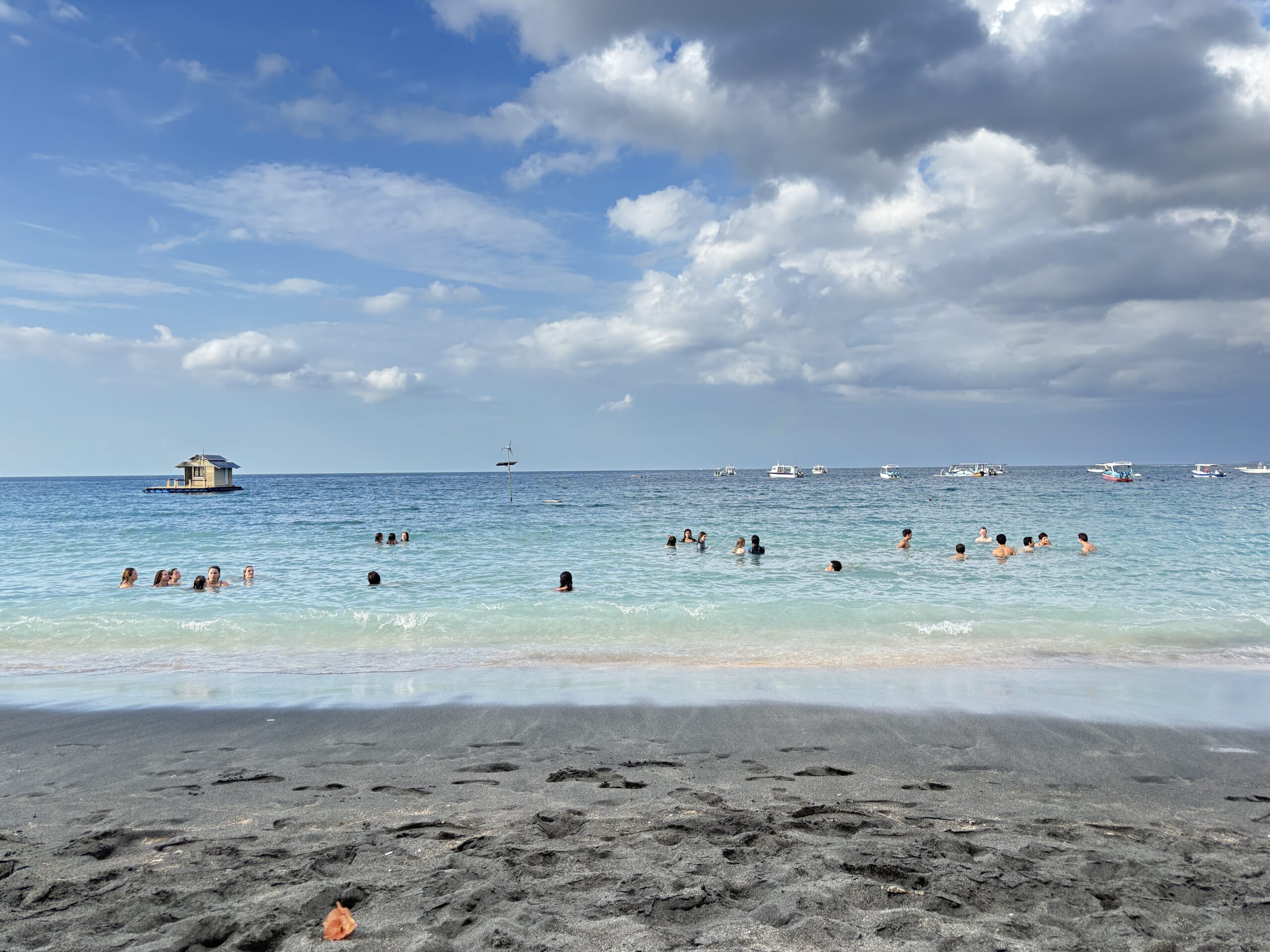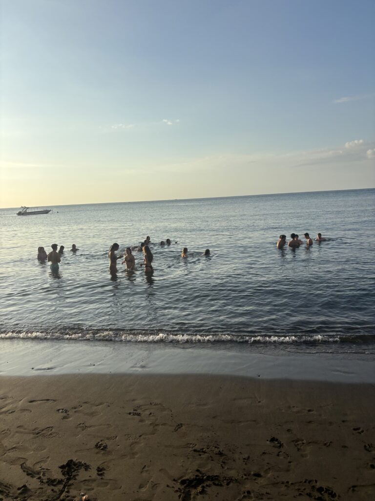 After, we made our way to a restaurant nearby the temple. There, we ate ice cream and indulged in some food. Once we made it to homebase we went down to the black sand beach and swam with our friends!