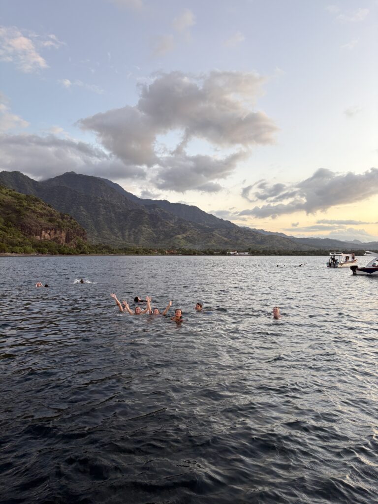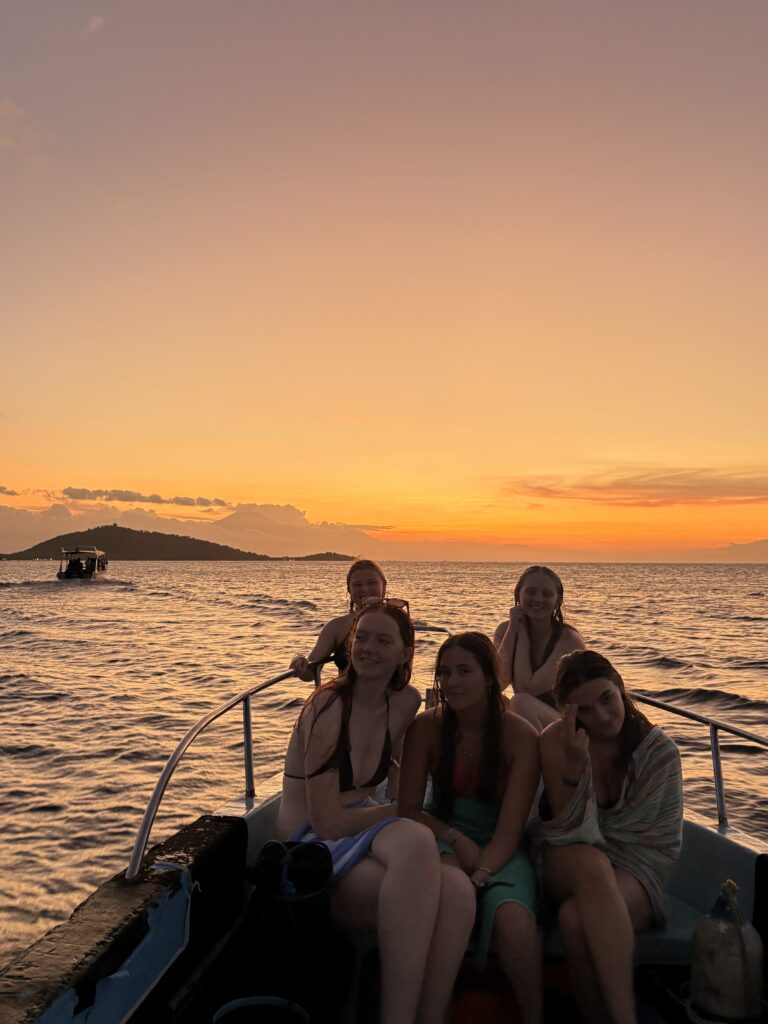 Soon after that we hopped on a water boat and cruised to the middle of the ocean to watch a stunning sunset and then we swam and came back to our new homebase for dinner!
