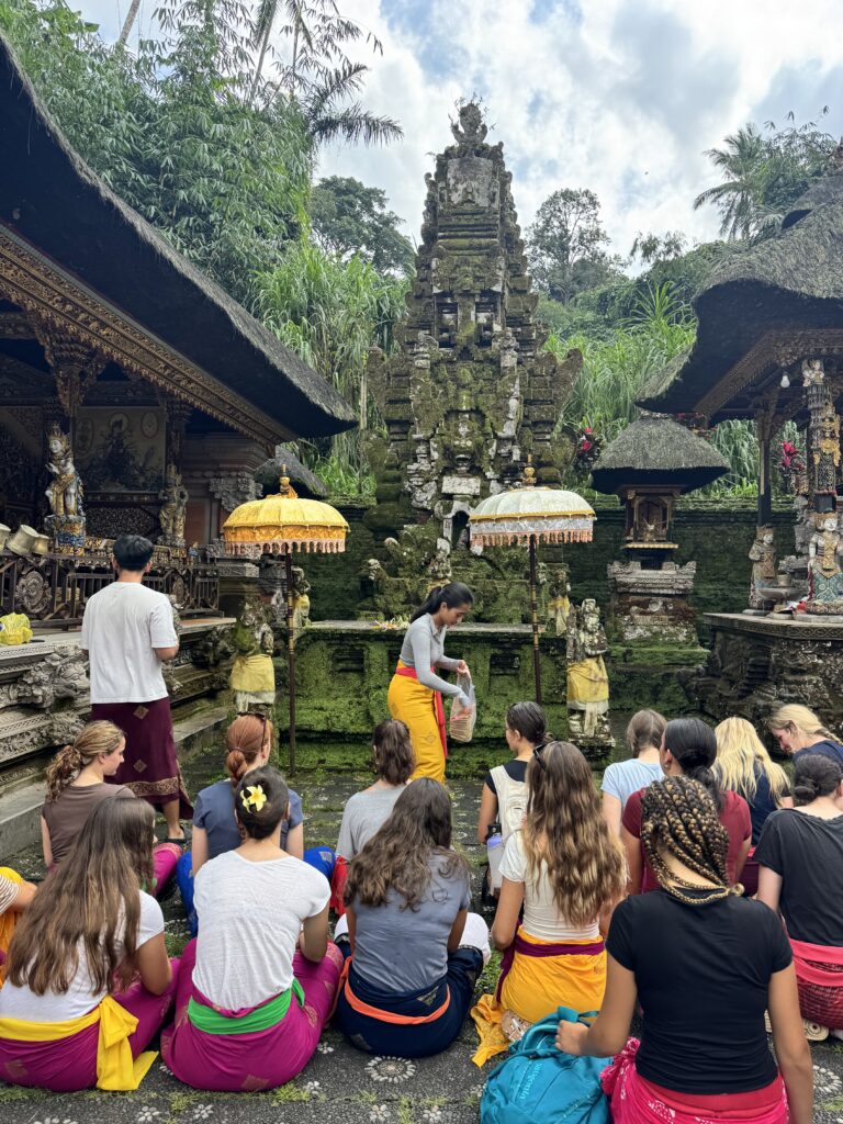 After the visit of the paddies, we got the chance to wear our sarongs at the temple. Shortly after our arrival we were greeted with beautiful architecture and colorful flora. We went through the process of a purification prayer. It was a once in a lifetime experience!
