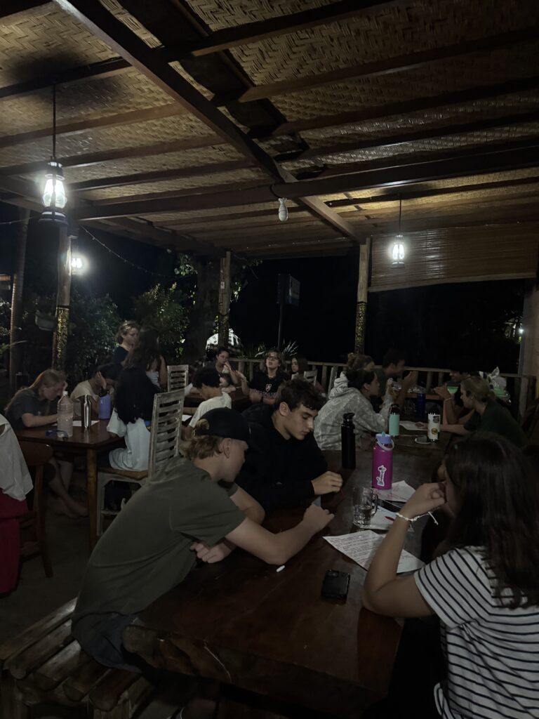 We then headed back to home base where we took a long rest and got ready for our night out of fun and other activities. We got ready in our nicest outfits and then walked to a restaurant and resort where we ate delicious pizza, drank piña coladas, and took photos. Students enjoyed the local music and even joined in for some of the songs. We laughed and sang like there was no tomorrow. We ended our night by doing a shout out circle under the big moon. We walked back to home base with smiles and laughter in the air and memories of a fantastic night.