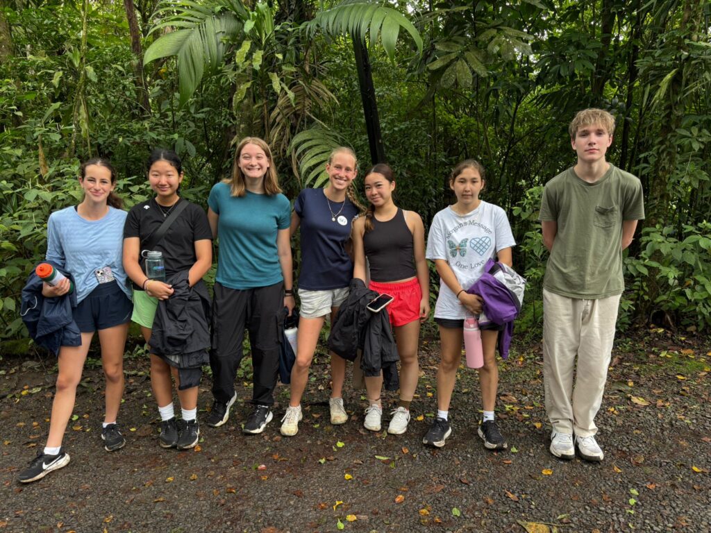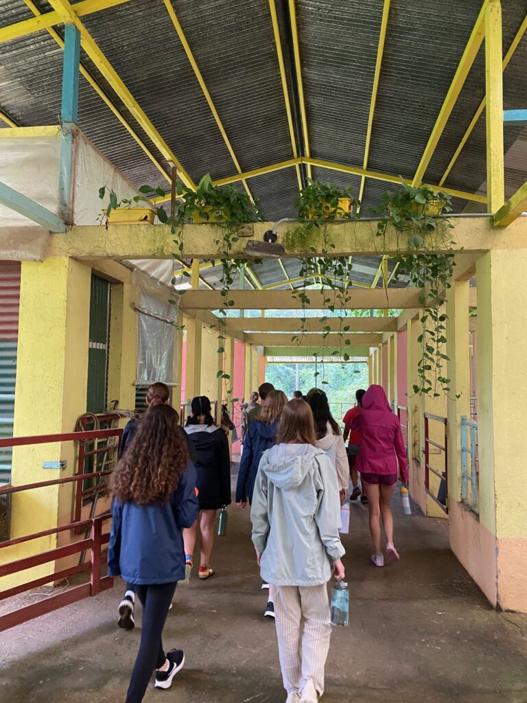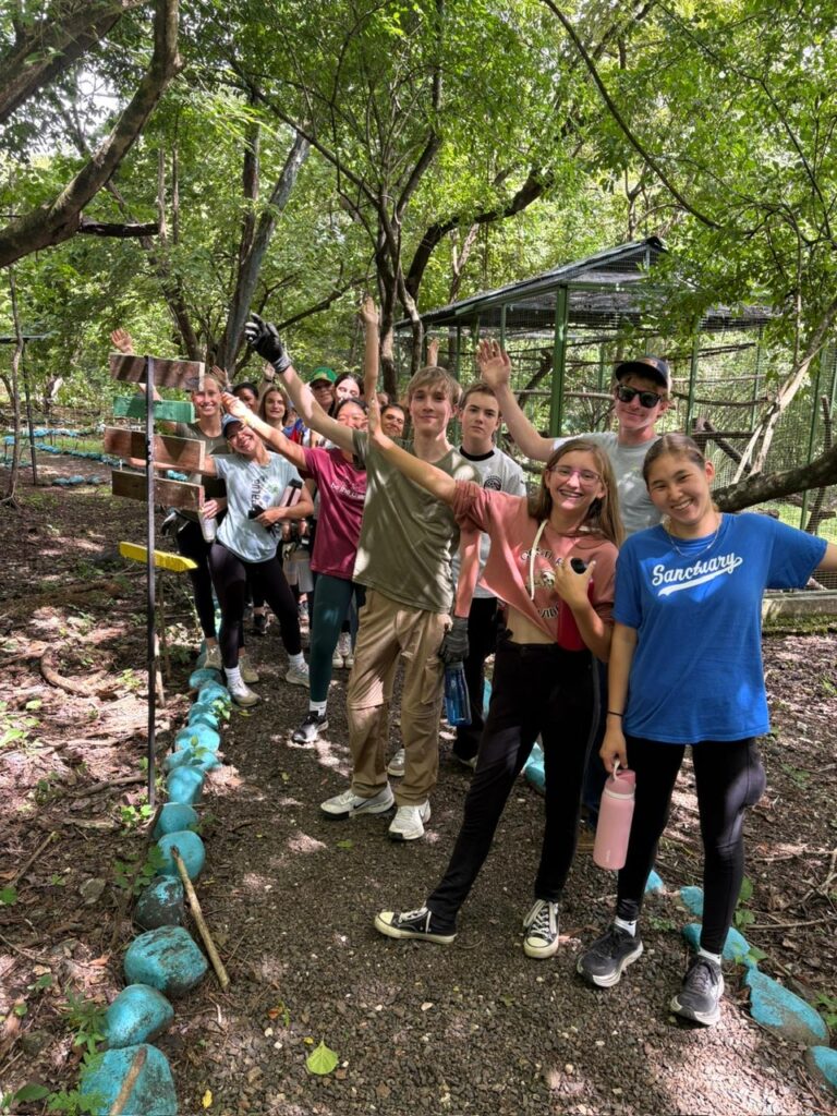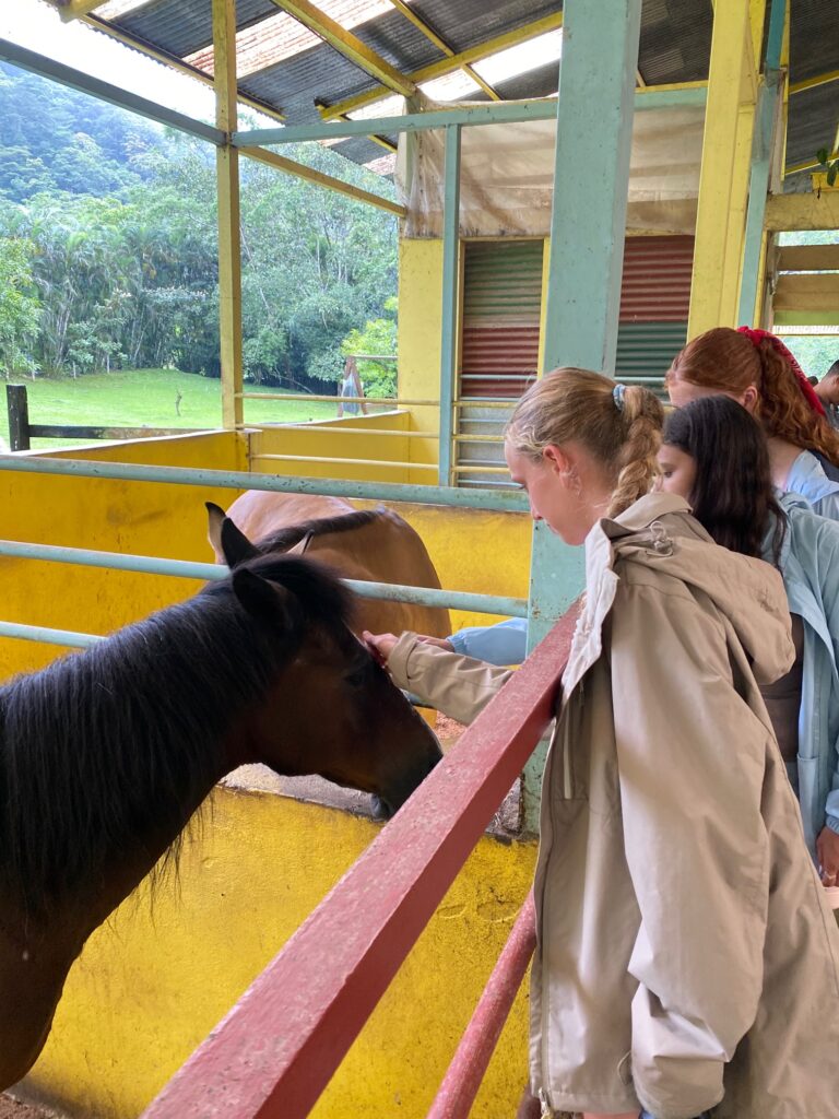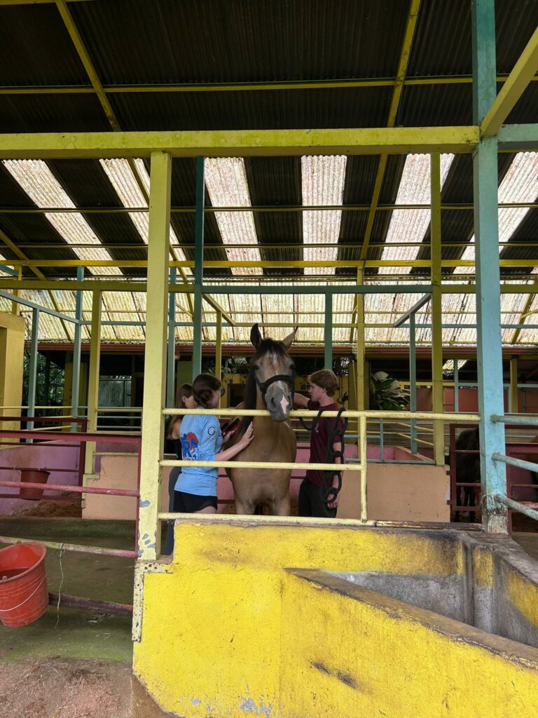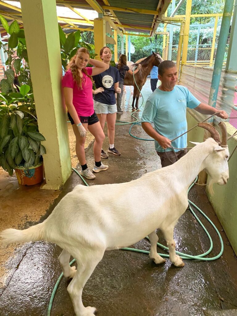 Hi it’s Lila! Today we woke up early cleaning trails for Lands in Love. Halfway through the hike we were led to a super pretty and humongous waterfall!!! We had such a fun time exploring and taking awesome pictures. After we had a great breakfast and some fun free time hanging out spent playing many rounds of werewolf with the group. Then we had an interesting lesson about phone use right before lunch. Later, we had an amazing tour of all the animals with one of the very sweet founders of the rescue. We saw all of their special needs animals and learned all about how they rescued them and now care for them. We even got to meet some of the paralyzed dogs and hear about their recovery journeys. We ended the night with dinner and reflecting on the animals with our mentor groups. We can’t wait for the next half of the trip!