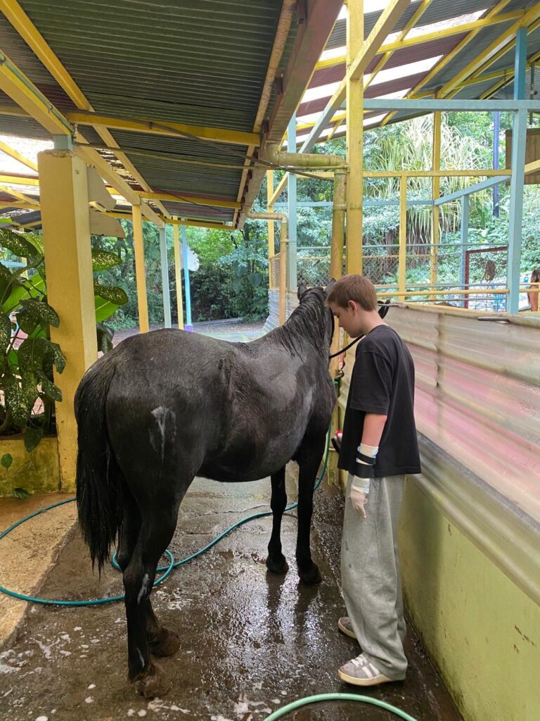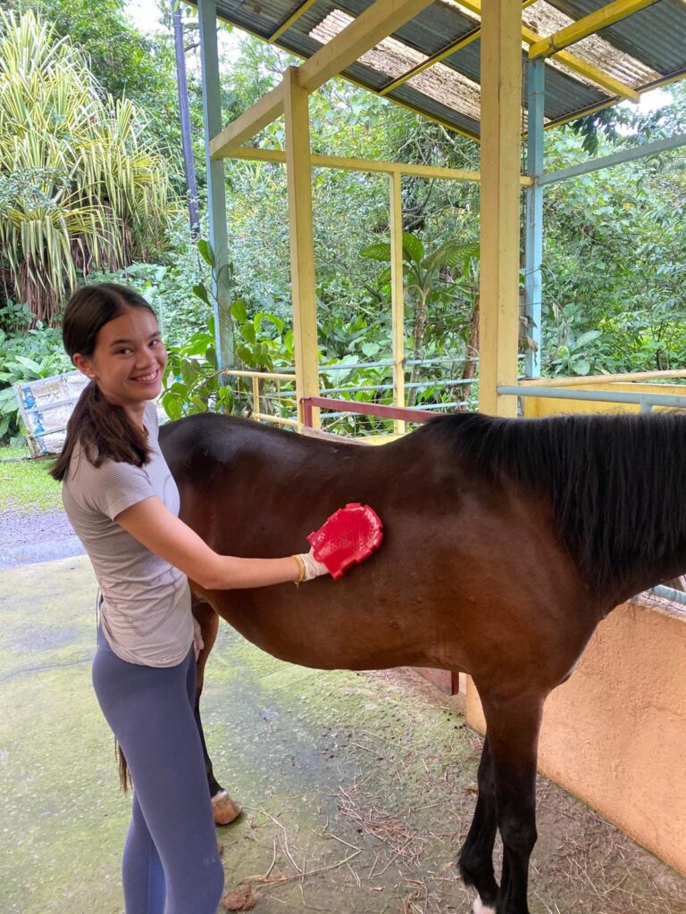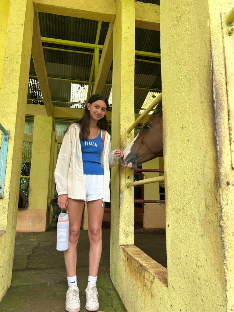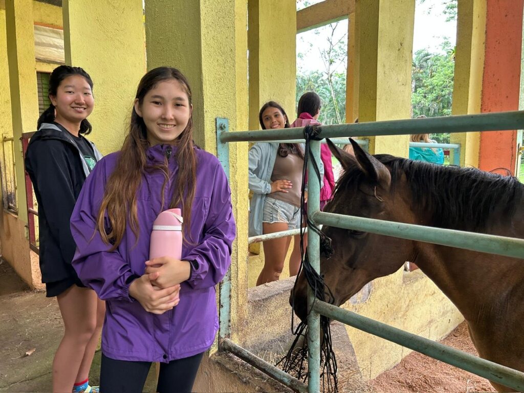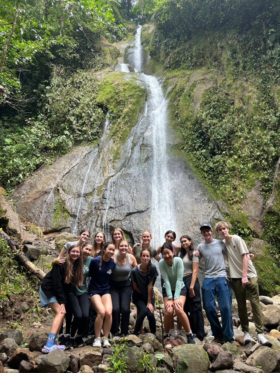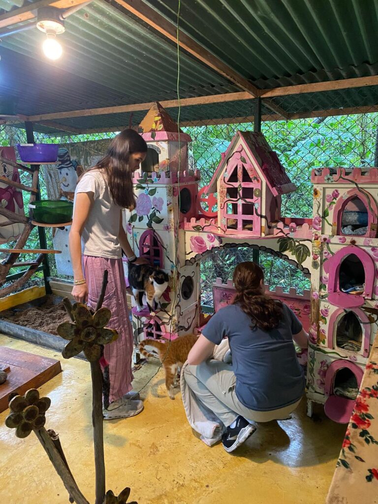 Hi it’s Lila! Today we woke up early cleaning trails for Lands in Love. Halfway through the hike we were led to a super pretty and humongous waterfall!!! We had such a fun time exploring and taking awesome pictures. After we had a great breakfast and some fun free time hanging out spent playing many rounds of werewolf with the group. Then we had an interesting lesson about phone use right before lunch. Later, we had an amazing tour of all the animals with one of the very sweet founders of the rescue. We saw all of their special needs animals and learned all about how they rescued them and now care for them. We even got to meet some of the paralyzed dogs and hear about their recovery journeys. We ended the night with dinner and reflecting on the animals with our mentor groups. We can’t wait for the next half of the trip!