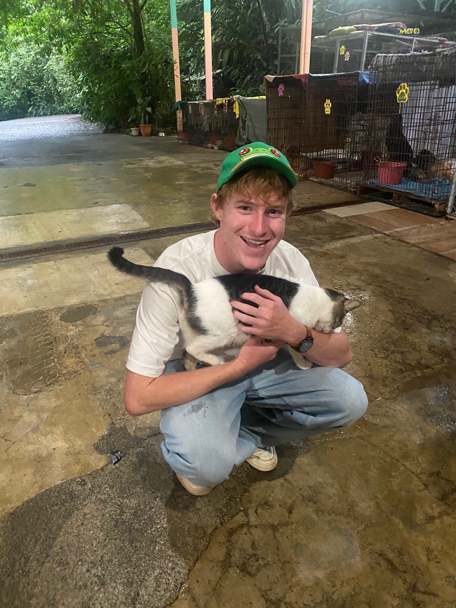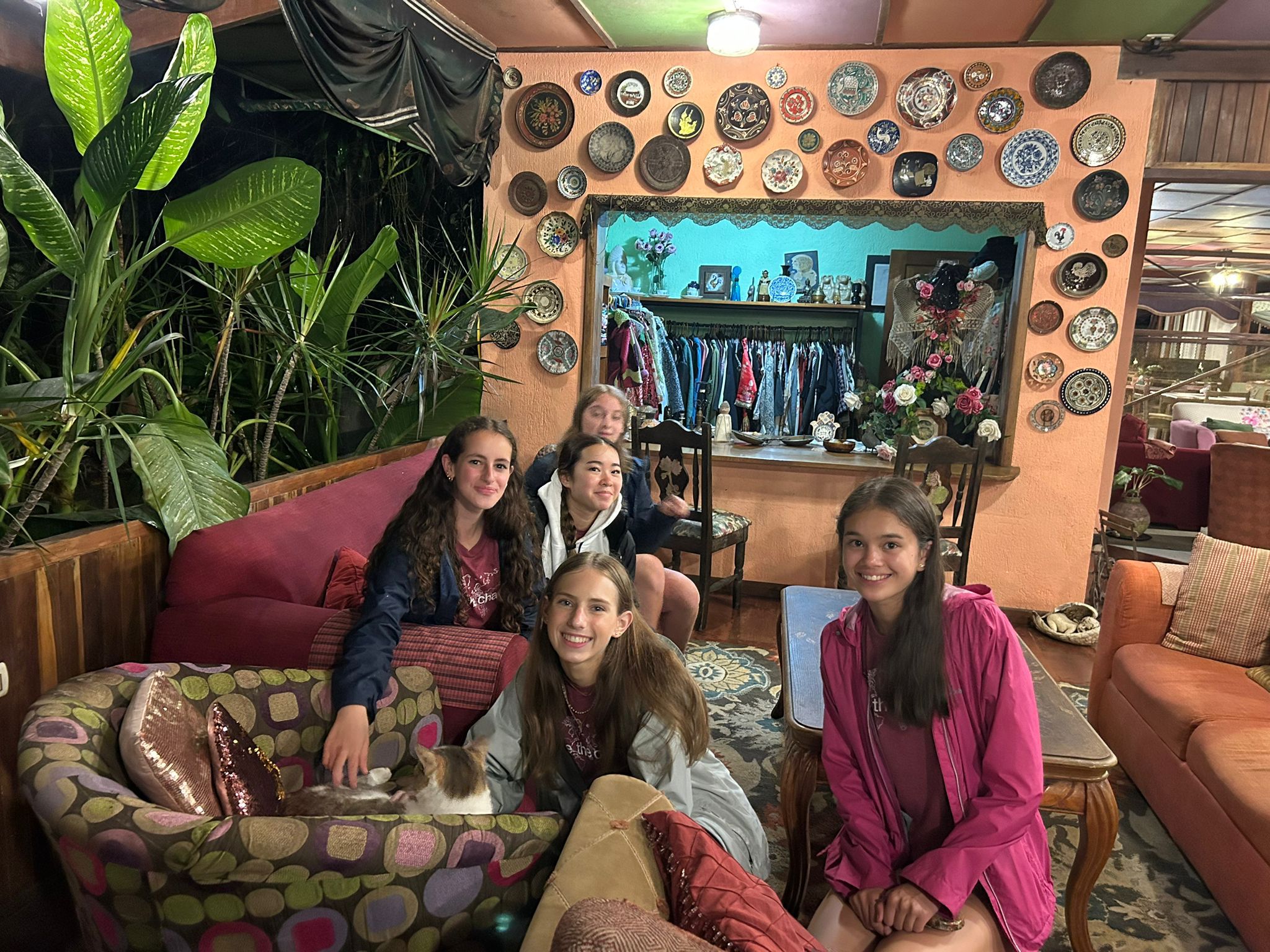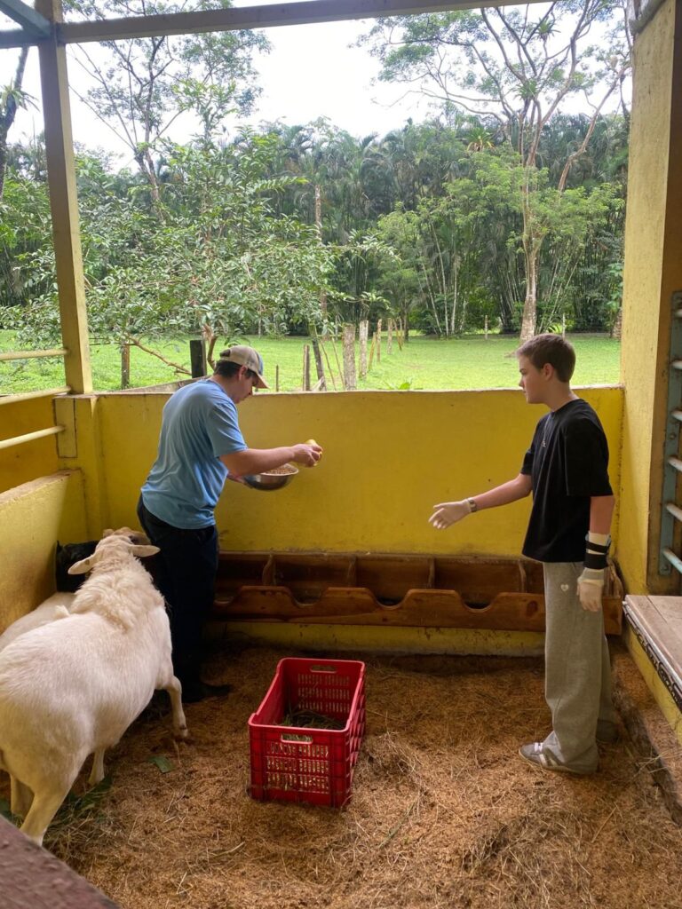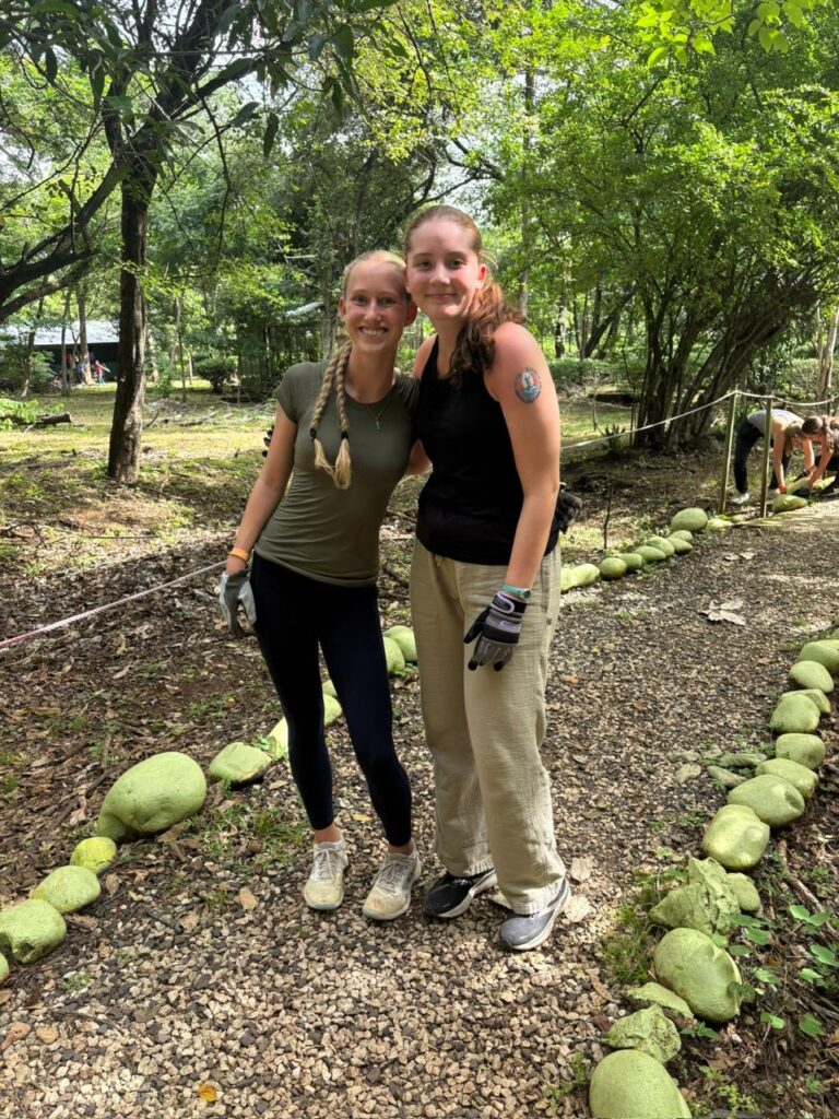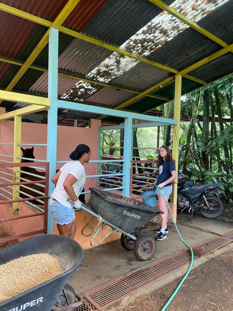 Hi it’s Lila! Today we woke up early cleaning trails for Lands in Love. Halfway through the hike we were led to a super pretty and humongous waterfall!!! We had such a fun time exploring and taking awesome pictures. After we had a great breakfast and some fun free time hanging out spent playing many rounds of werewolf with the group. Then we had an interesting lesson about phone use right before lunch. Later, we had an amazing tour of all the animals with one of the very sweet founders of the rescue. We saw all of their special needs animals and learned all about how they rescued them and now care for them. We even got to meet some of the paralyzed dogs and hear about their recovery journeys. We ended the night with dinner and reflecting on the animals with our mentor groups. We can’t wait for the next half of the trip!