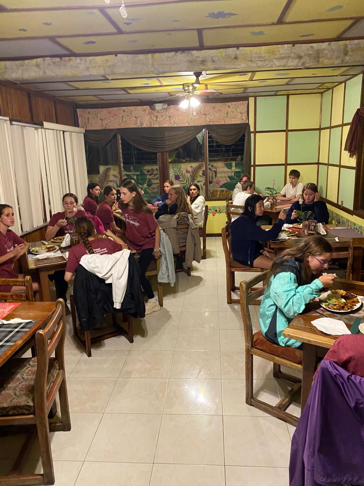 Hi, it’s Katia and Caitlyn, the leaders of the day today! We started out with an early breakfast before starting our 5 hour car ride to the next home base, Hotel Wilson. We ate lunch at an outdoor restaurant and had an orientation with the Vida team with expectations for the next few days of service. After lunch and orientation, we checked into the hotel and had free time where we could hang out in our rooms or by the pool. We returned to the same restaurant spot for dinner and enjoyed hamburgers and fries. After dinner, we drove to a church where we had a leadership activity about SMART goals. Finally, we walked backed to our hotel to get ready for our first day of service with Vida tomorrow.