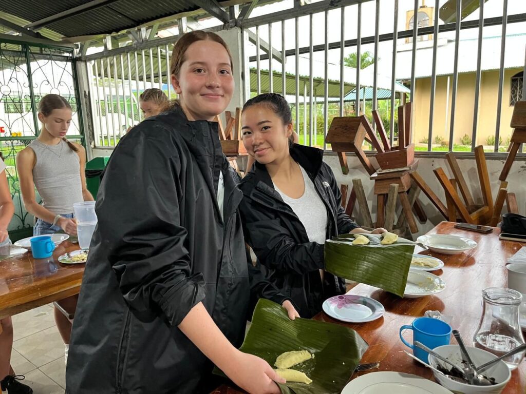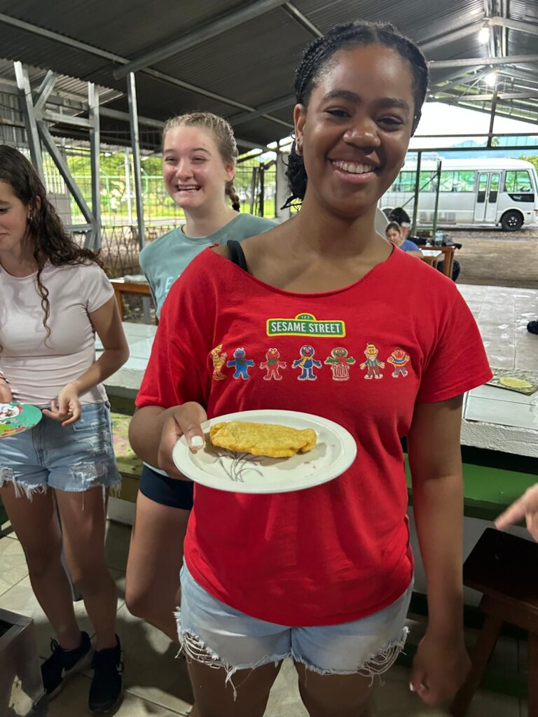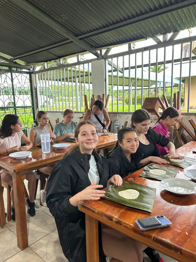 Hola! It’s Lily and Isabella, today was very eventful. After a delicious breakfast of arroz con leche, we moved on to our service groups for today! After service we had another great meal before heading off to a local cooking class where we learned how to make tortillas and traditional empanadas filled with beans, both equally scrumptious. We then had some free time before dinner, once we finished, we had a lovely guest speaker called Samantha who talked about the Costa Rica biodiversity which was super interesting! We are going to go to sleep early in anticipation for the fun day of hot springs and chocolate tour tomorrow.