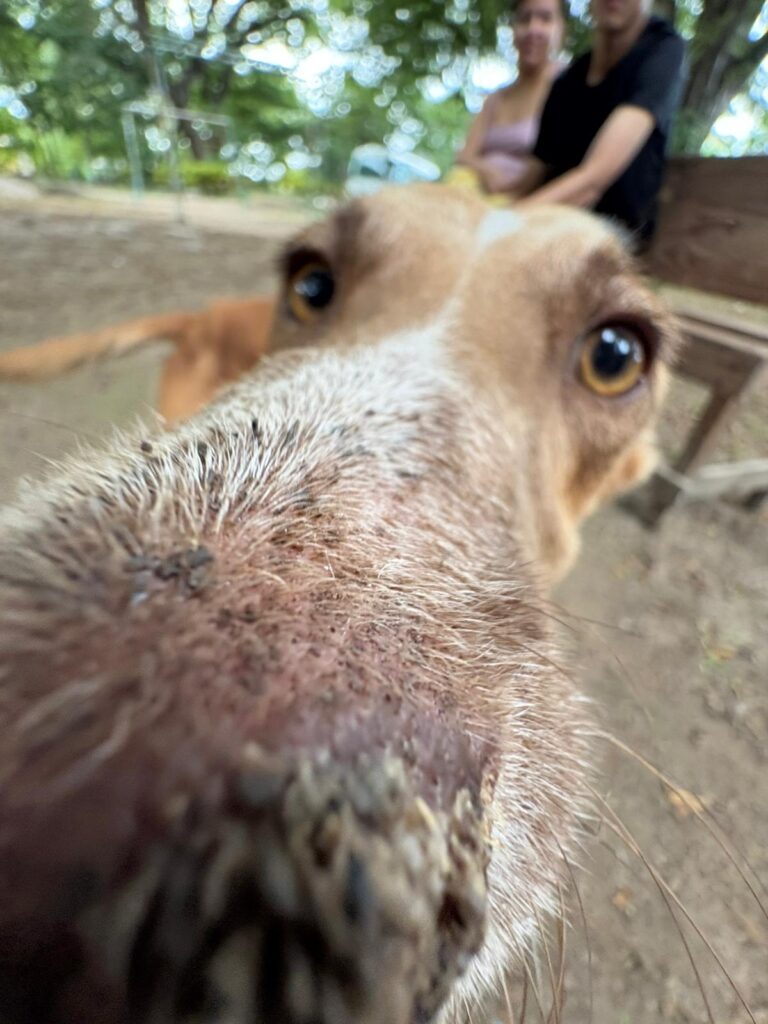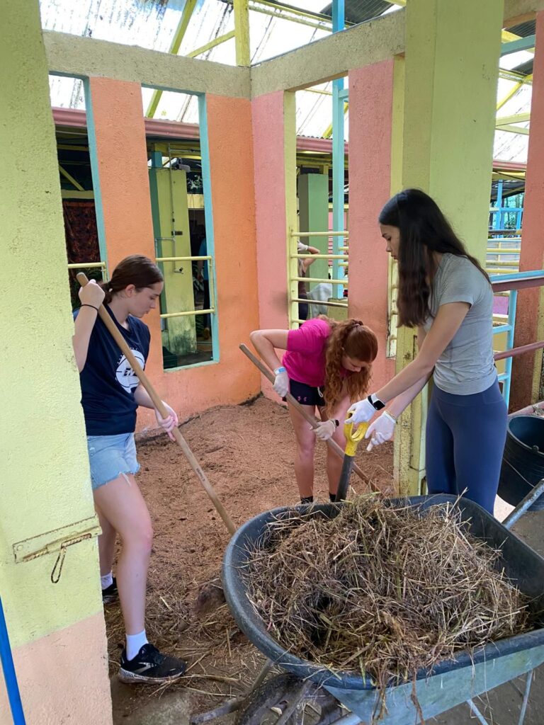 After lunch, we visited another service site where we toured the grounds, met the animals, and learned so much. Then we helped clear leaves and sticks from the paths and enclosures to support the staff and keep things tidy.