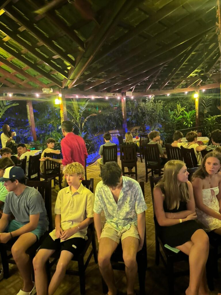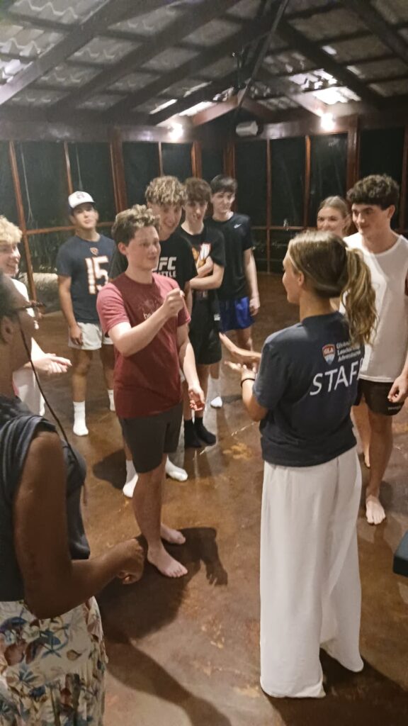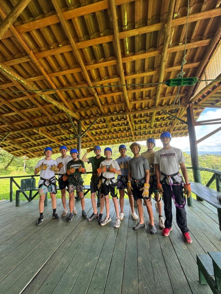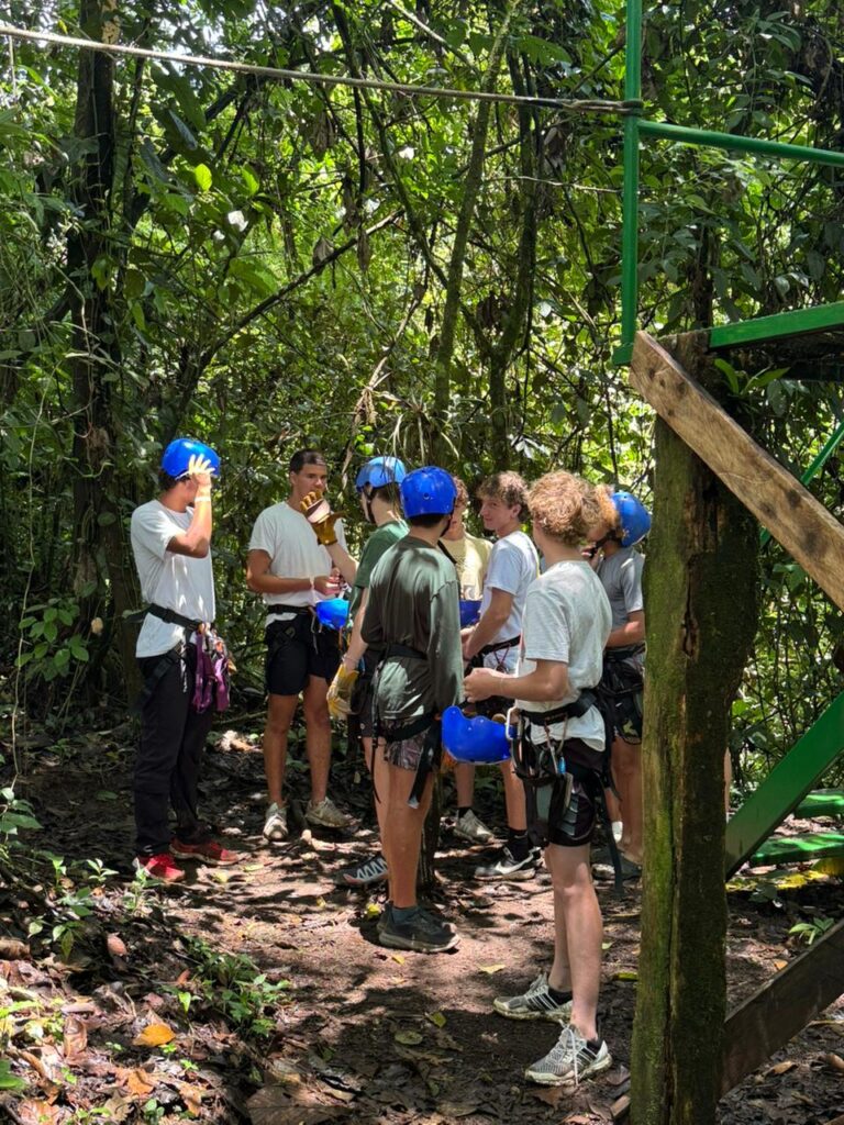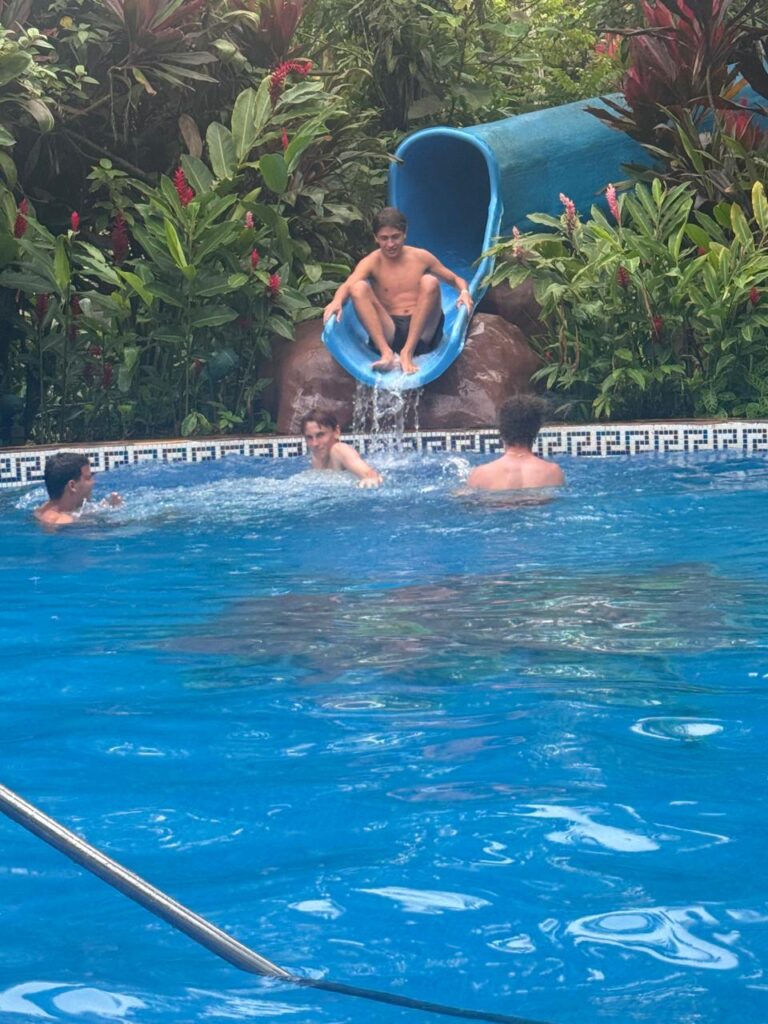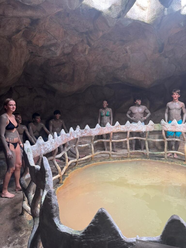 This morning we woke up at 7 o’clock. Ate breakfast at the restaurant in our new hotel and set off on our riveting afternoon adventure. which entailed a hike to a waterfall through a jungle full of dinosaurs (statues) and a infamous bright blue river, where we then swam in said waterfall. After drying off from our rejuvenating swim, we then hiked to a zip lining adventure the lines were up to a mile long through the canopies of the jungle. After being rained on we came back to home base dried off, had lunch and some time to rest. Then at 3 o’clock we met for a snack hour, followed by a relaxing mud bath and natural steam room at our hotels Hot Springs. After washing off the very stinky mud and feeling silky, smooth. We had more time to rest and then we met for dinner after dinner we had our final mentor group. In which we had heartfelt goodbyes and played games of appreciation to end the very fun and meaningful session.