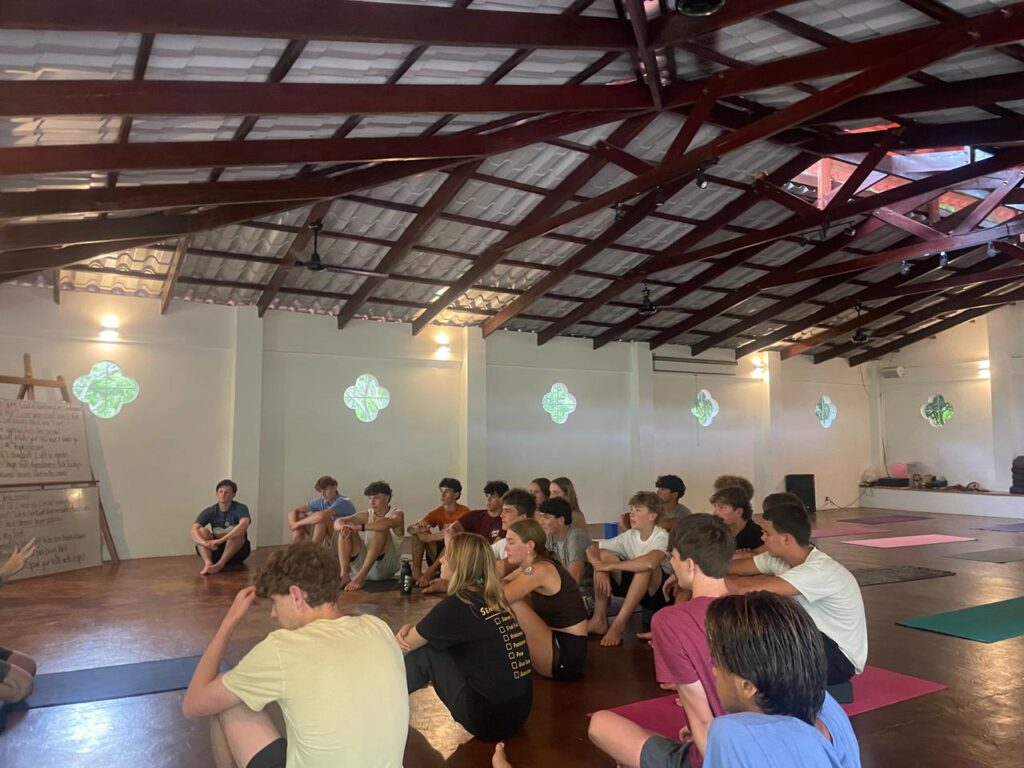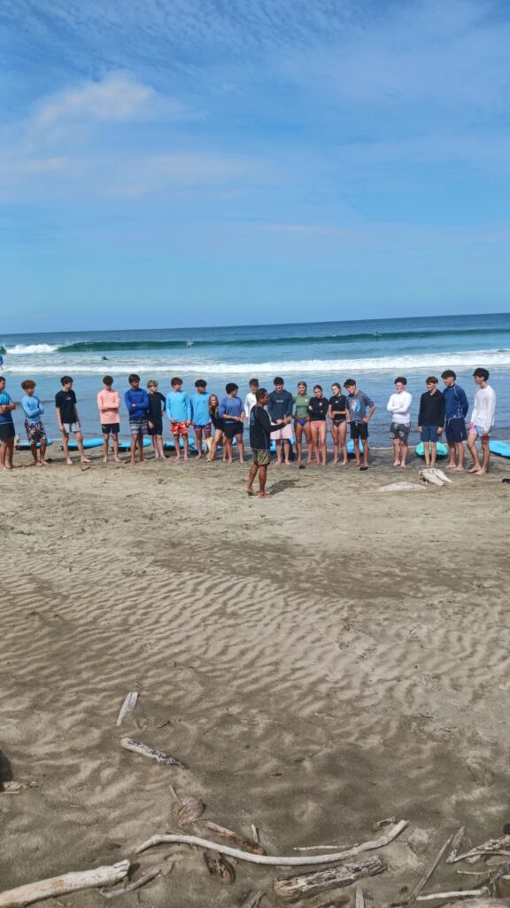 This morning, we got an extra hour of sleep to wake up to some pancakes for breakfast. After breakfast we went to our third surfing class of the trip. It was fun but a little harder because of the treacherous water. Following surfing was pizza for lunch which everyone enjoyed. After lunch the group took a small break before heading into a yoga and reflection session. In this session we discussed two different types of people which are “people pleasers” and “perfectionists.” We talked about the flaws of each type and then practiced responding to each archetype with partners. Then we finished with some spine focused stretching which symbolized strengthening our backbone which holds one’s values and self worth. Next, since our group did such a superb job in the yoga session with the teacher Kevin, we got to go to the store to buy some snacks. Right after this, we went to the field to run some soccer or “football” if that floats your boat and basketball. When we finished this, we drove back and right away had chow circle and dinner. The dinner was a hard tortilla dish with cheese sauce and it was delectable. We played some games and headed to bed.