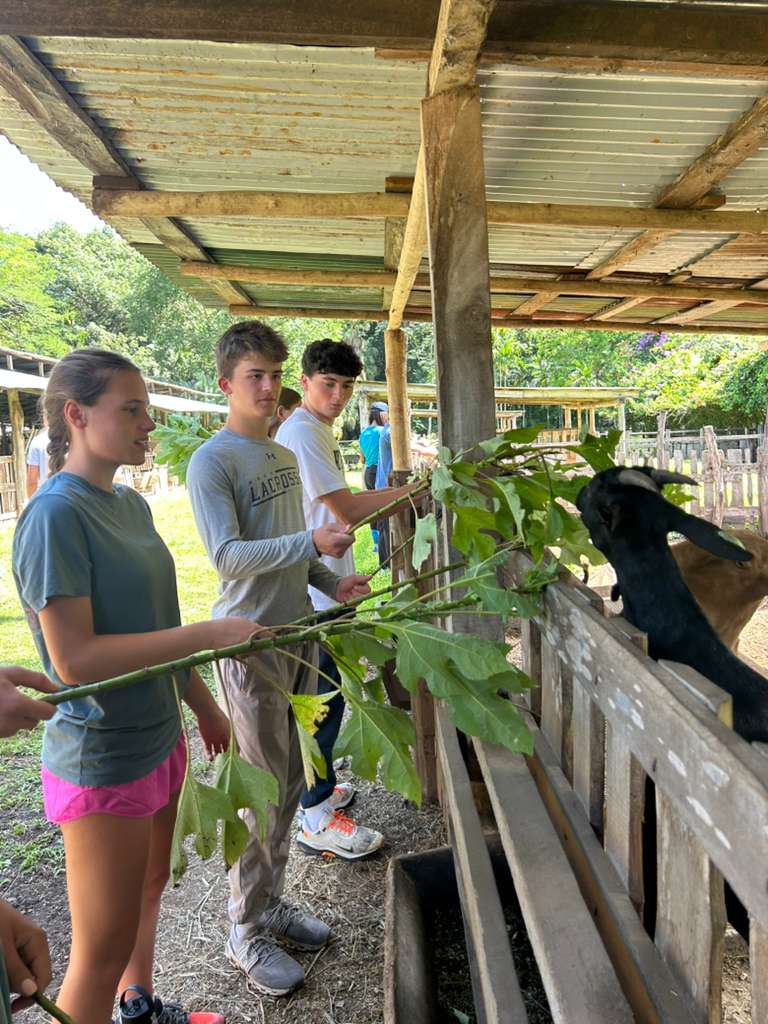 The day started off early as we ate eggs and rice and beans. After breakfast, we took a short bus ride to one of the most sustainable ranches in Costa Rica. When we got there, we toured the property and greeted the pigs, chickens, goats, and dogs. We then all took a turn milking Bubbles, the female goat. We then all drank a shot full of Bubbles’ milk. We started our sustainability by planting the goat’s favourite food, grass. We then practiced meditation in the studio learning to control our breaths and thoughts. After a quick dip in the pool, we stopped by a local grocery stores to pick up snacks and drinks. We then took a ride to Playa Negra, a local beach with some of the biggest waves we’ve seen. We finished the day learning about sustainability in our mentor groups.