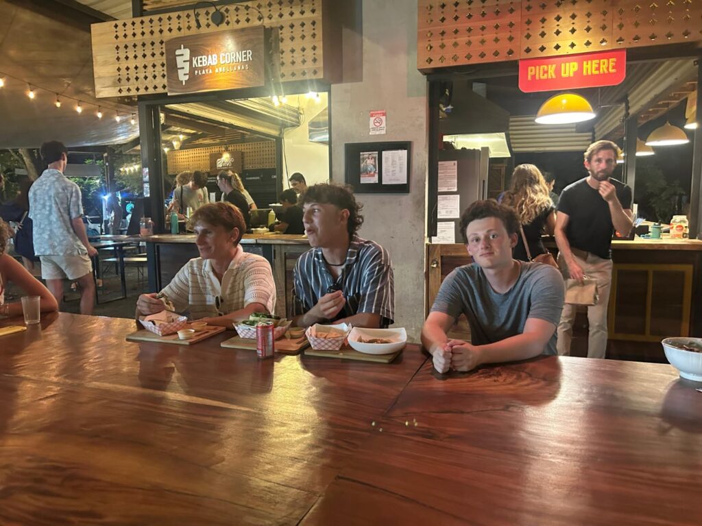 After service, we went back to the peace retreat to eat lunch and relax. For lunch we had Casado, a traditional Costa Rican dish consisting of rice, meat, beans, and plantains. Following lunch, we relaxed and then made our way to the beach for surfing. We spent an hour and a half surfing, and then another hour getting smoothies and playing soccer as a group. Next, we came back home to eat dinner which was Sweet & Sour Pork. After that we did mentor groups where we drew signs to motivate the kids during sports in 2 days.