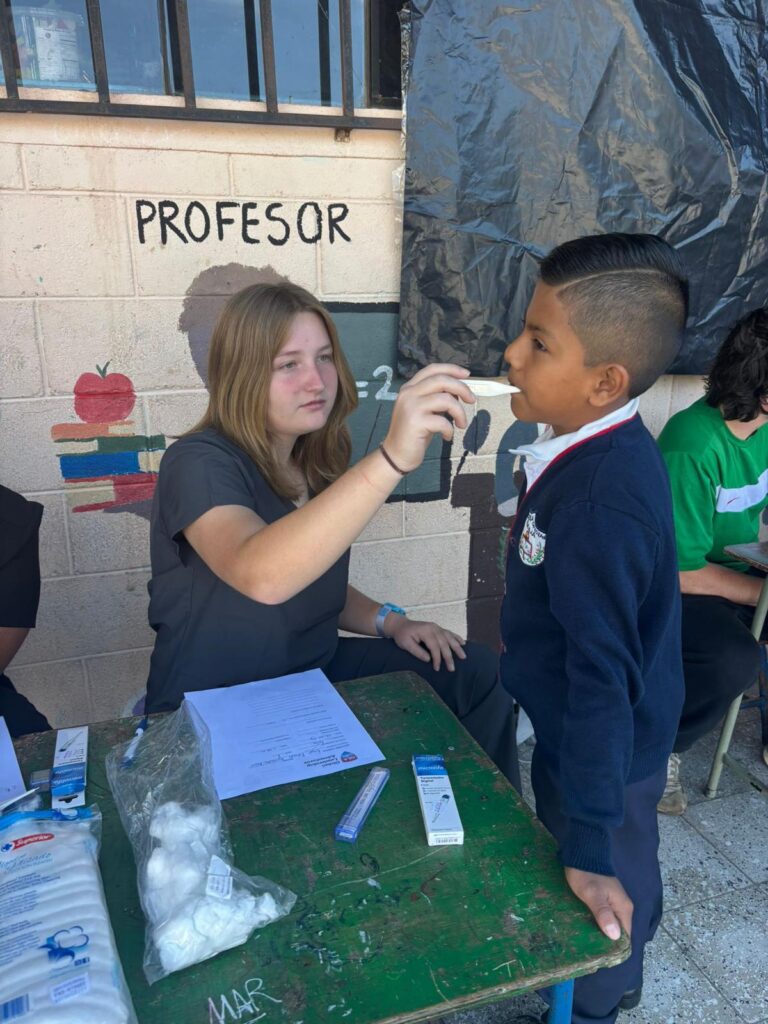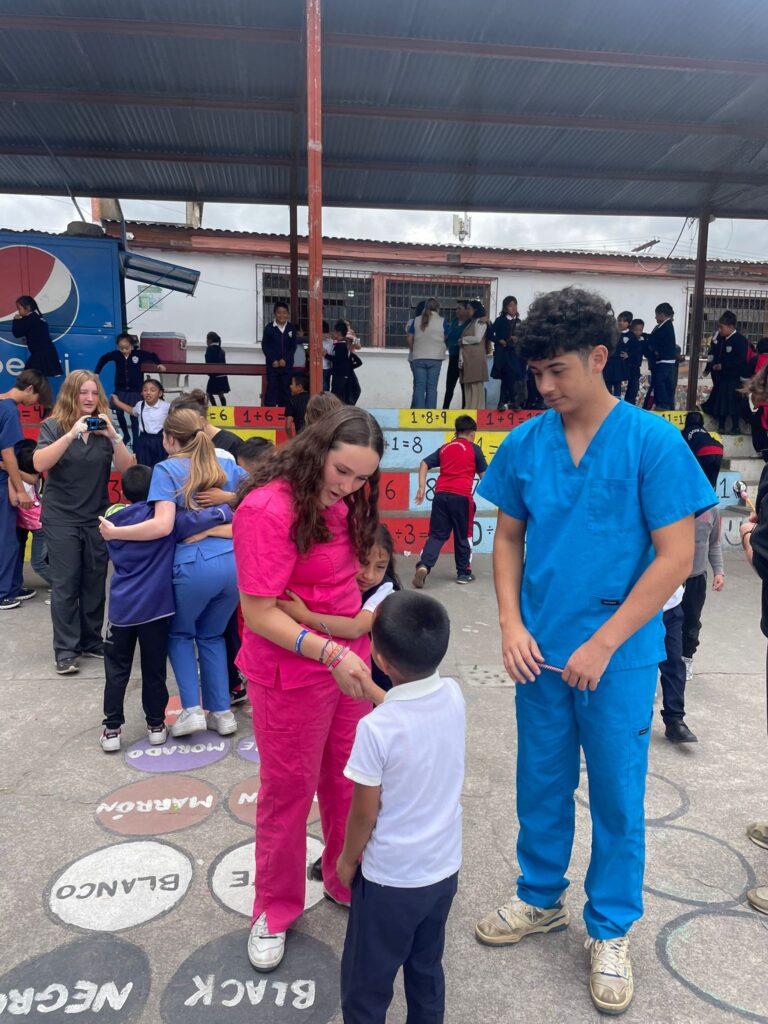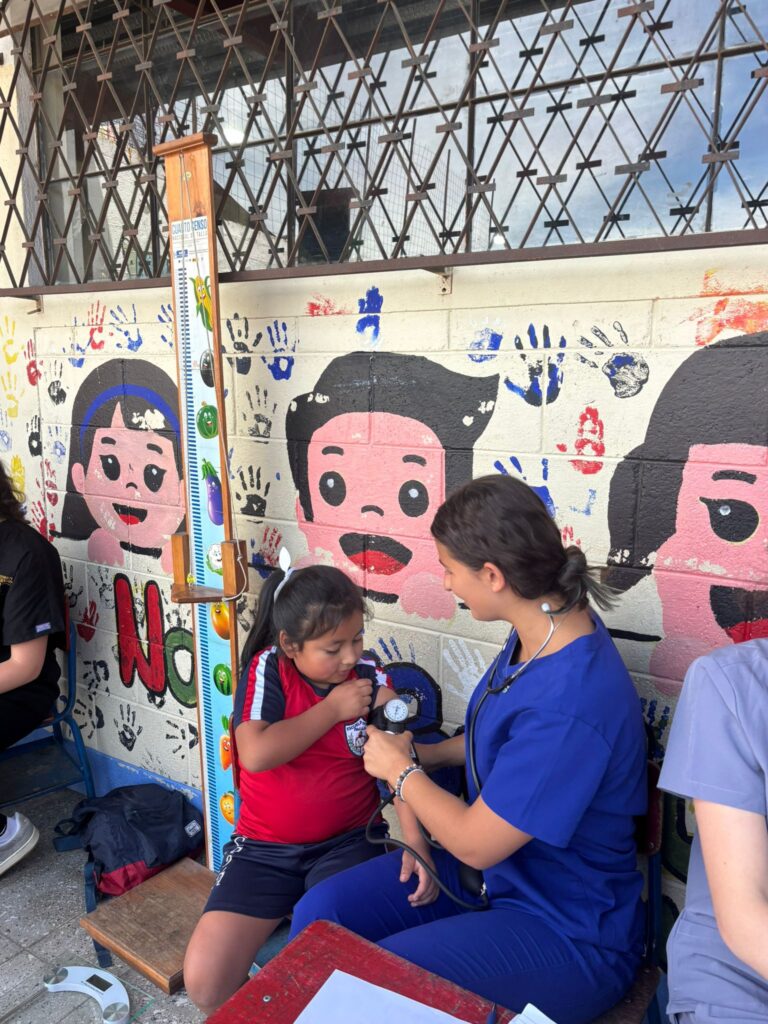 This morning, we had our first day of service, working with kids at a local school. We paired up and rotated through different stations, each contributing to a health check for the students. The kids were adorable and excited to interact with us! Many even gave us hugs! We had the opportunity to practice a lot of Spanish, and many of us picked up new words along the way.