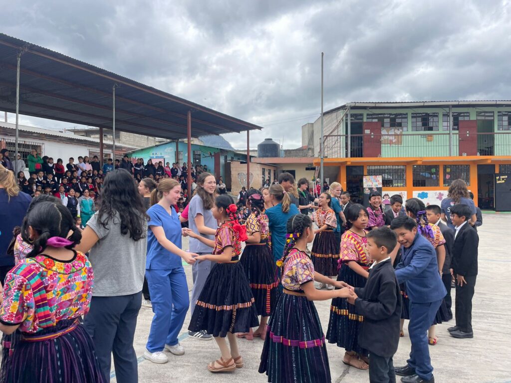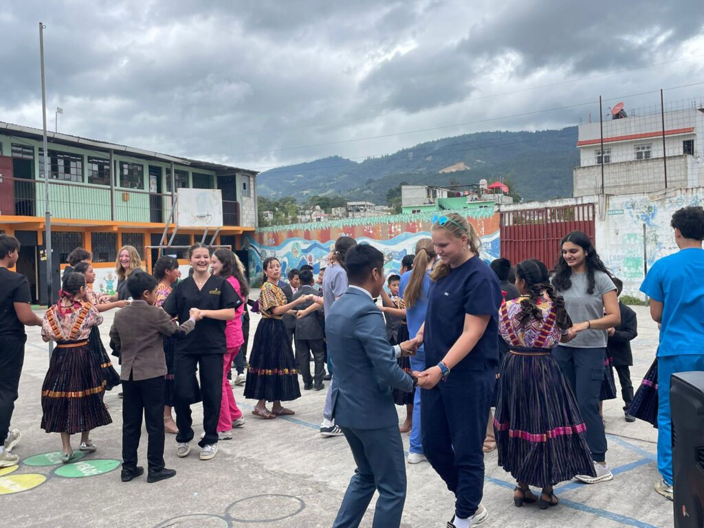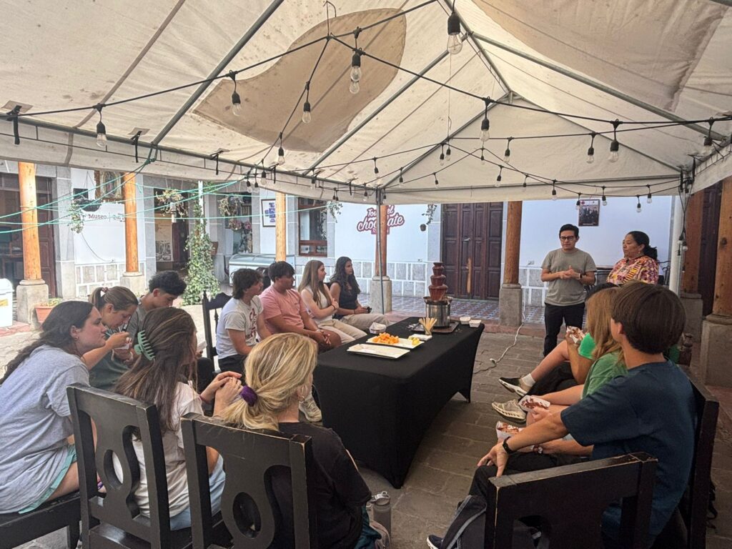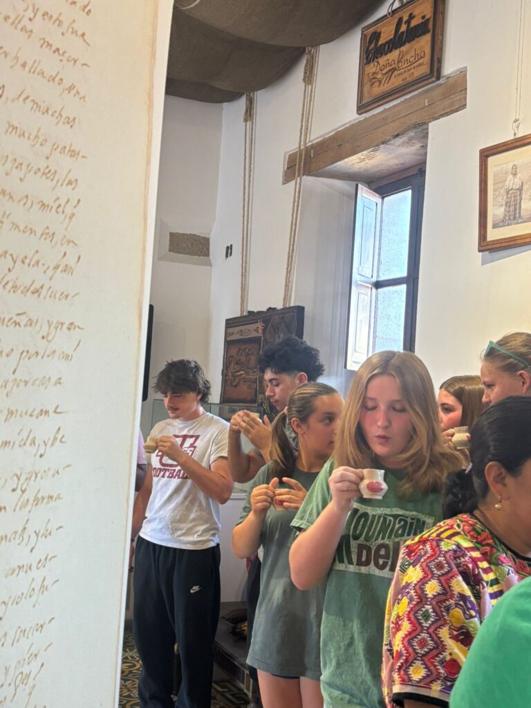 After we completed the health checks for the first grade, we returned to home base and enjoyed a delicious lunch. Shortly after, we boarded the bus to visit a family-owned chocolate business where we learned about the rich Mayan culture surrounding cacao. At the museum, we explored that history and traditional process of making chocolate. The Mayans have long used cacao to create delicious drinks, and we got to try three variations. We also enjoyed a chocolate fountain served with fresh fruit. We then went to a salsa class, where we learned the fundamental steps of the dance. Afterward, we returned to home base for dinner and time to unwind. If was a full, fun, and rewarding day!