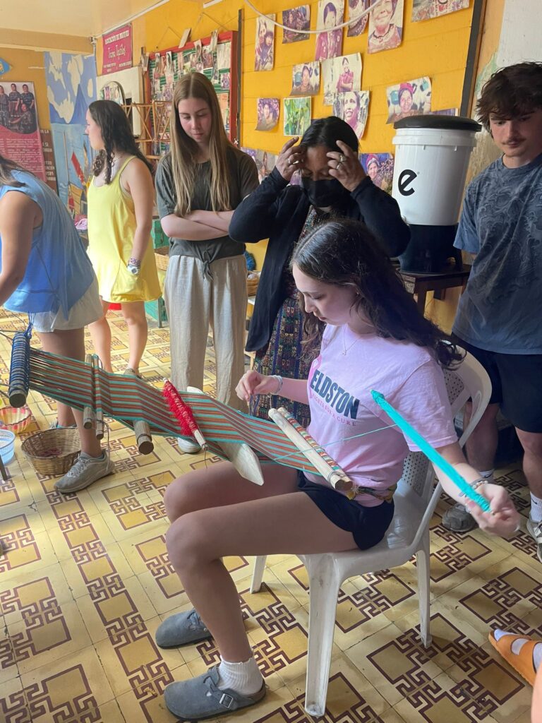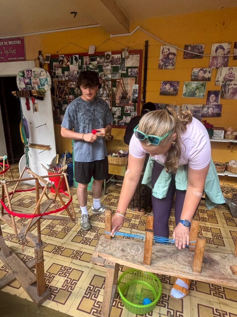 The next part of the day we had a short break and some of us played soccer in our free time. Then we went to learn about weaving—the culture and ancient techniques and how the practice had changed throughout time. We learned how to weave a scarf- we each tried this hands-on.