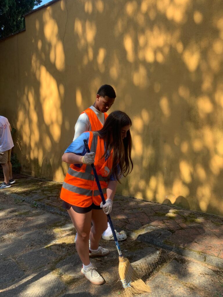 Today on our Italian odyssey we woke up in a beautiful villa and we began our day with a breakfast of fresh fruits, yogurt, and baked goods. We filled up our water bottles and boarded the bus that would take us through the beautiful Italian countryside all the way to the great renascence city of Florence. As we entered the city, the first thing we noticed was the beautiful Italian architecture. As Florence has regulated that no modern buildings be built, it has retained its natural beauty through the years as well as an ancient architectural sense. Once we arrived, we traveled to a local park and began performing volunteer work cleaning up leaves and pulling weeds alongside the friendly locals.